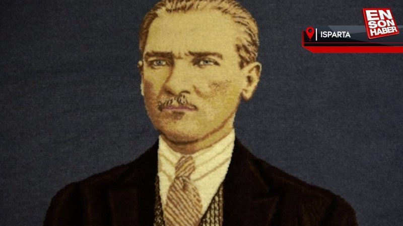 Isparta’da halı, kilim ve etnografik ürünlerin sergilendiği müzede sanatçı Ahmet Aksakal'ın yaptığı Mustafa Kemal Atatürk'ün fotoğrafının bulunduğu 3 boyutlu halı sergileniyor.