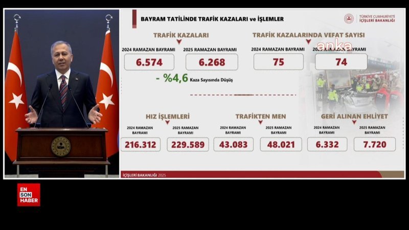 İçişleri Bakanı Ali Yerlikaya'nın yaptığı açıklamaya göre 9 günlük Ramazan Bayramı tatilinde 74 kişi meydana gelen kazalarda hayatını kaybederken, 10 bin 199 kişi ise yaralandı.