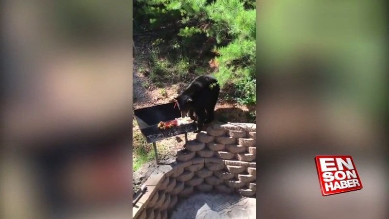 ABD'de aç kalan bir siyah ayı, bir evin bahçesindeki mangaldan et çaldı.