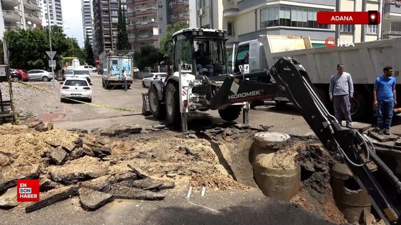 Adana'da yol çöktü, araç düşmekten son anda kurtuldu