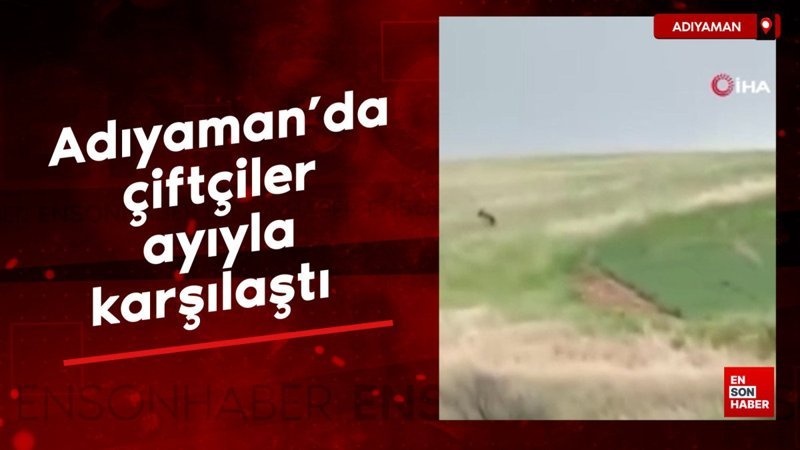 Adıyaman’da arazide ayı ile karşılaşan çiftçiler büyük korku yaşadı.