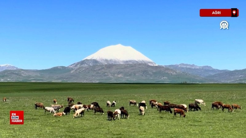 Ağrı'da Kösedağ'ın zirvesi baharda karla kaplandı