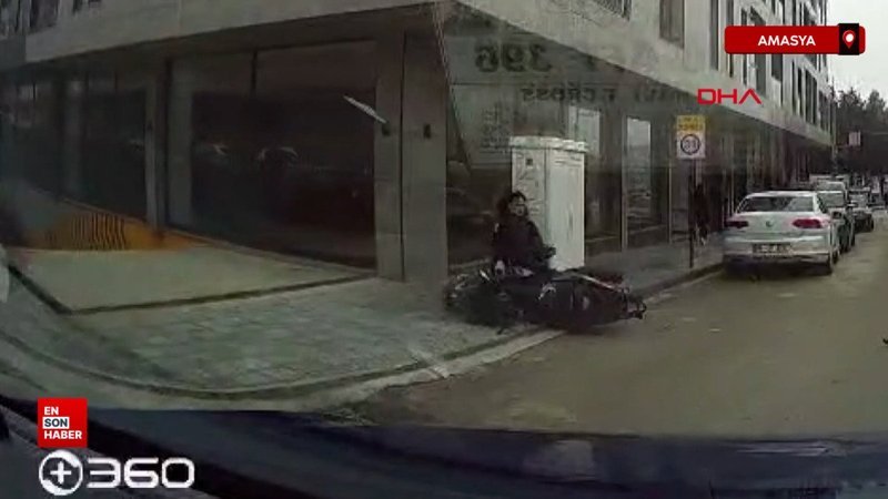 Merzifon ilçesinde otomobille çarpışan motosikletin sürücüsü yaralandı. Kaza, araç içi kamerasına yansıdı.