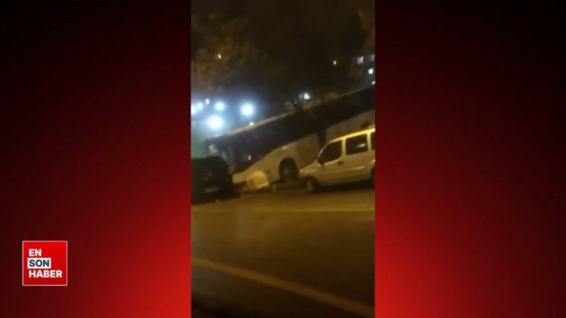Ankara'da park halindeyken freni boşalan ve hareket eden işçi servisi araçlara çarparak durabildi. Kaza anı cep telefonu kamerasıyla kaydedildi.