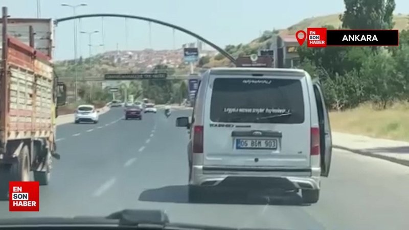 Ankara’da sıcaktan bunalan sürücü, aracının kapısını açarak seyahat etti