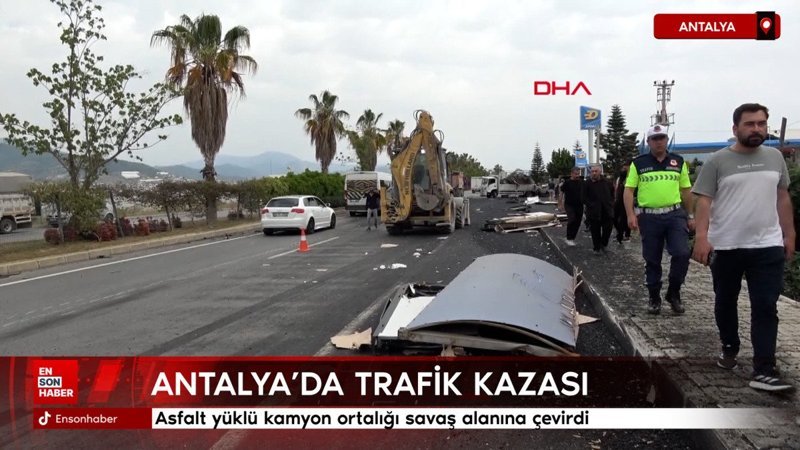 Antalya'da asfalt yüklü kamyon ortalığı savaş alanına çevirdi