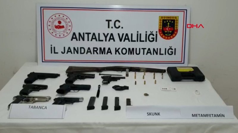 Antalya'nın Manavgat ilçesinde silah ticareti yapıldığı ihbarı üzerine jandarmanın yaptığı operasyonda bir iş yerinde çok sayıda silah ve silahlara ait şarjör ile bir miktar uyuşturucu madde ele geçirdi.
