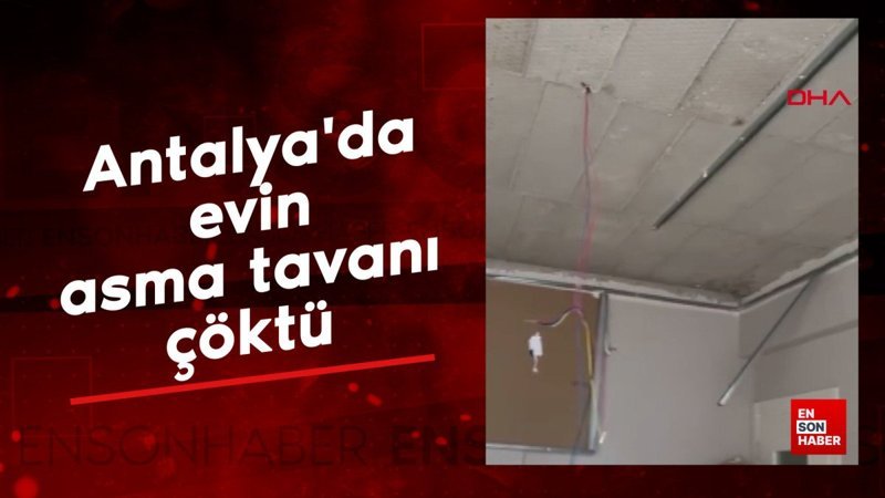 Antalya'nın Finike ilçesinde bir dairenin salonundaki asma tavan çöktü. Olaydan birkaç dakika önce yan odaya geçen anne ve 2 çocuğu, tavanın altında kalmaktan kurtuldu.