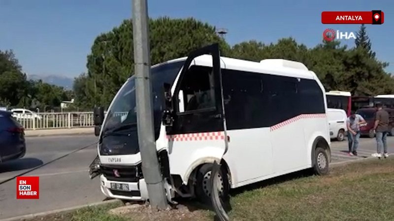 Antalya'da freni patlayan halk minibüsü önce kırmızı ışıkta bekleyen araca, ardından refüjdeki aydınlatma direğine çarptı. Kazada minibüs sürücüsü ve araçta bulunan 3 yolcu yaralandı.