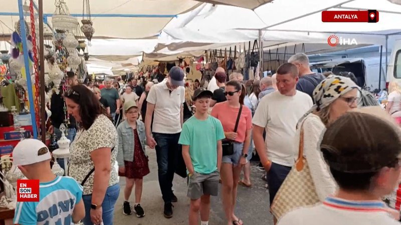 Antalya'da otellerinden çıkan turistler minibüslerle akın akın bu pazara geliyor