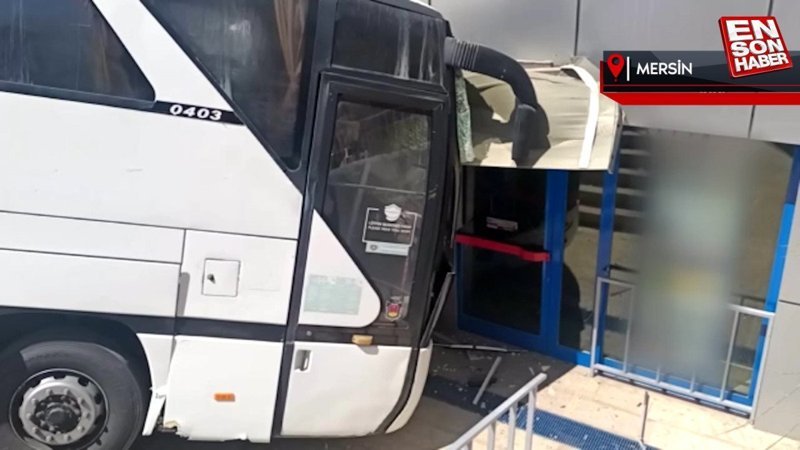 Mersin'in Silifke ilçesinde, park halindeyken freni arızalanan otobüs otomobile çarpıp markete girdi.