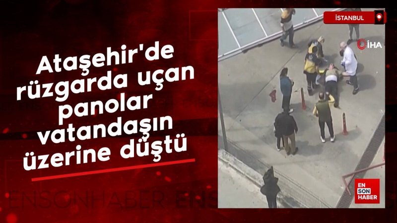 Ataşehir'de rüzgarda uçan panolar vatandaşın üzerine düştü