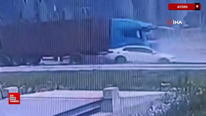 Aydın’ın Söke ilçesi Organize Sanayi Bölgesi (OSB) hemzemin geçidi çıkışında meydana gelen trafik kazası, güvenlik kameralarına yansıdı. İddiaya göre, tır sürücüsünün kör noktada kalan otomobili fark etmemesi sonucu otomobil metrelerce sürüklendi.