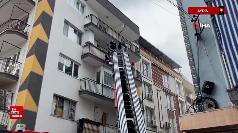 Aydın Efeler ilçesinde beş katlı binada çıkan yangın nedeniyle tüm apartmanı duman sararken mahsur kalan vatandaşları itfaiye ekipleri merdivenli araç marifeti ile kurtardı.