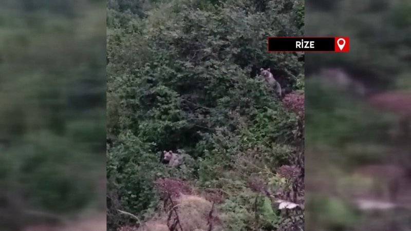 Rize'nin Çamlıhemşin ilçesinde fındık bahçesine giren 2 ayı cep telefonu kamerasına anbean yansıdı.