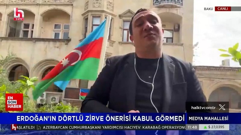 Azerbaycan'ın Dağlık Karabağ'da operasyonları sürerken Türkiye ve Cumhurbaşkanı Erdoğan'dan Azerbaycan'a tam destek geldi. Halk Tv'ye konuk olan Azerbaycanlı gazeteci Türkiye'den övgüyle bahsederken Ayşenur Arslan araya girdi ve yayını kesti.