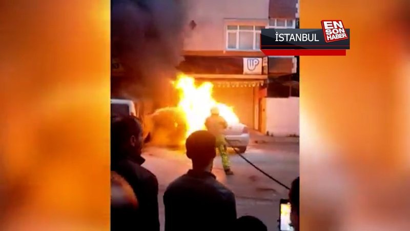 Bağcılar’da park halindeki otomobil kundaklandı. Güvenlik kamerasına yansıyan kundaklanma anında otomobile benzin döken kişinin aracın yanmasını beklediği görülüyor.