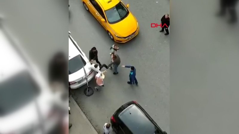 Bağcılar'da 2 müşterisi ile kavga eden taksicinin görüntüleri kamerada