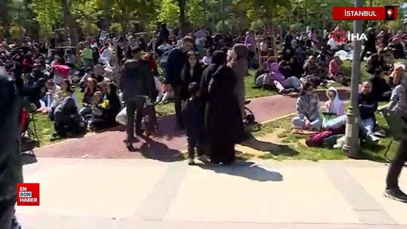 Bahçelievler'de depremin ardından vatandaşlar parklara akın etti. Parkta adeta adım atacak yer kalmazken, oluşan yoğunluk dron ile görüntülendi