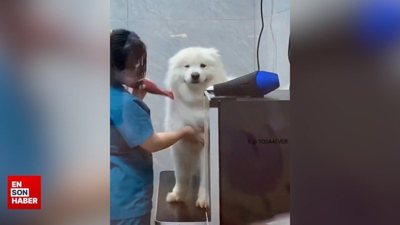 Bakım yapılırken sahibini gören köpeğin tepkisi