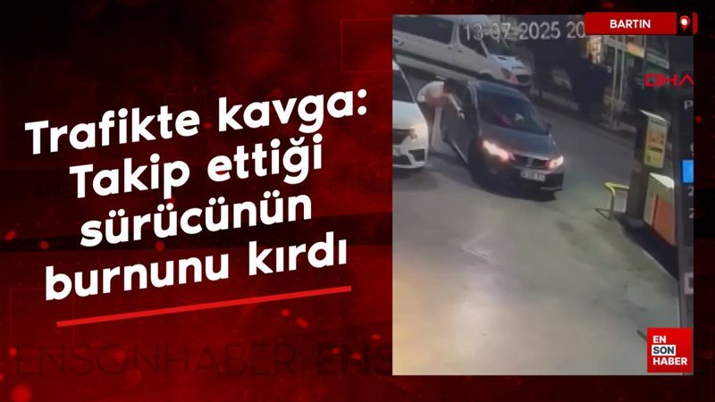 Bartın'da, trafikteki tartışma sonrası H.N., aracıyla takip ettiği E.A.’nın yumruk atıp burnunu kırdı. Yaşananlar güvenlik kamerasına yansırken, E.A.’nın şikayeti üzerine gözaltına alınan H.N., adli kontrolle serbest bırakıldı.