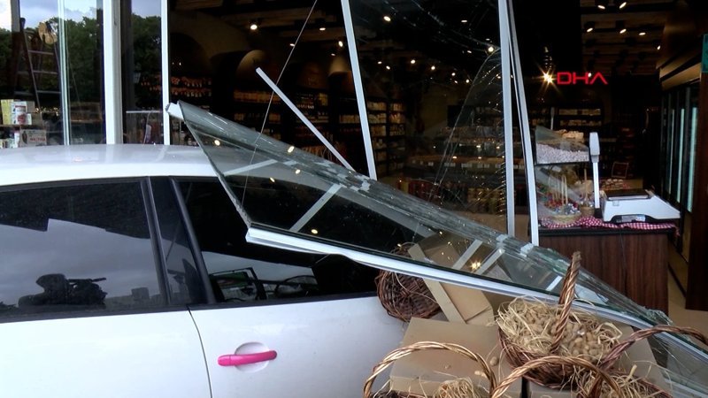 Başakşehir'de aracını park etmek isteyen sürücü fren yerine gaza basınca, bir kuru yemiş dükkanına girdi.