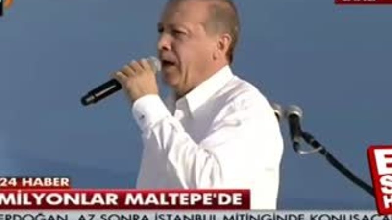 Cumhurbaşkanlığı seçimi kampanyası için Maltepe'de yaklaşık 2 milyon kişinin karşısına çıkan Erdoğan, Ekmeleddin İhsanoğlu'na tepki göstermek amacıyla İstiklal Marşı'nın 10 kıtasını okudu.