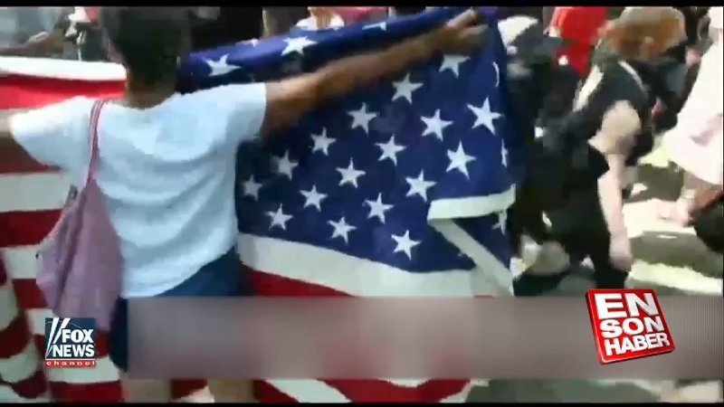 ABD'nin Boston kentinde yaşanan olaylarda protestoculardan birisi koşarken elindeki bayrağa takılarak düştü. O anlar kameraya yansıdı.