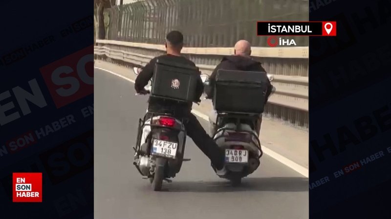 Bayrampaşa’da bozuk olan bir motosikleti, başka bir motosiklet sürücüsü ayağıyla itti. 2 motosikletin otoyoldaki tehlikeli yolculuğu cep telefonu kamerası ile görüntülendi.