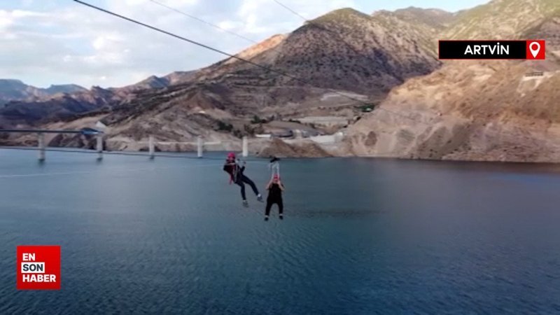 Artvin’in Yusufeli ilçesinde baraj suları altında kalan eski yerleşim yeri üzerinde turizm amaçlı yapılan zipline'ın deneme geçişini Belediye Başkanı Eyüp Aytekin yaptı. İlk denemede baraj gölü ortasında mahsur kalan Başkan Aytekin’i vatandaşlar ve zipline görevlileri halat yardımıyla kurtardı.
