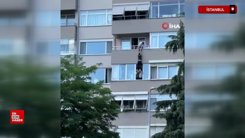 İstanbul Beşiktaş’ta bir kadın, 4. kattaki dairesinin penceresinden atlamaya çalıştı. Komşuları son anda kurtardı. O anlar cep telefonuyla kaydedildi.