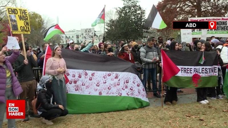 ABD'nin başkenti Washington'da, Beyaz Saray önünde bir araya gelen aktivistler, Filistin'e destek gösterisi düzenledi.