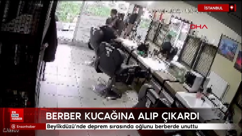 Silivri açıklarındaki 6.2 büyüklüğündeki depreme gittiği berberde yakalanan babanın içeride unuttuğu oğlunu berber kucaklayarak dışarı çıkardı. O anlar iş yerinin güvenlik kamerasına yansıdı.