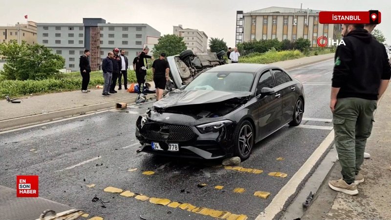 Beylikdüzü'nde aşırı hızla gittiği iddia edilen sürücü, kayganlaşan zemin nedeniyle direksiyon hakimiyetini kaybederek karşı şeride daldı. 3 aracın karıştığı kazada biri ağır 4 kişi yaralandı.