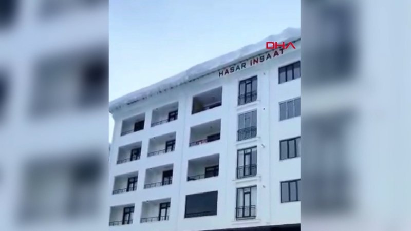 Kar yağışı sonrası çatıda biriken kar kütleleri şiddetle aşağıya düştü. O esnada balkonlara ve klimalara zarar veren kar kütlelerinin düşüş anı kameraya yansıdı.