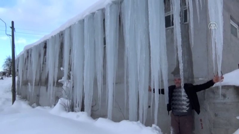 Bolu'da 3 metrelik buz sarkıtları oluştu