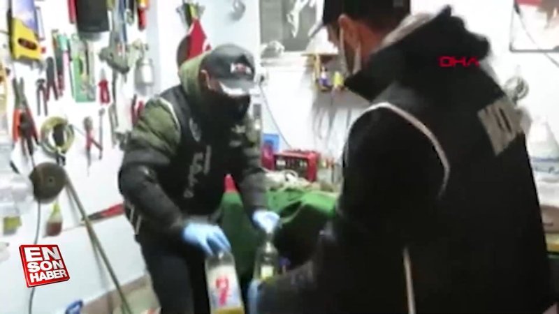 Bursa'da bir eve yapılan baskında 420 litre sahte içki ele geçirildi
