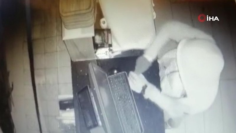 Dönerciye giren şüphelinin sadaka kutusunu alıp kaçtığı anlar güvenlik kamerasına yansıdı.