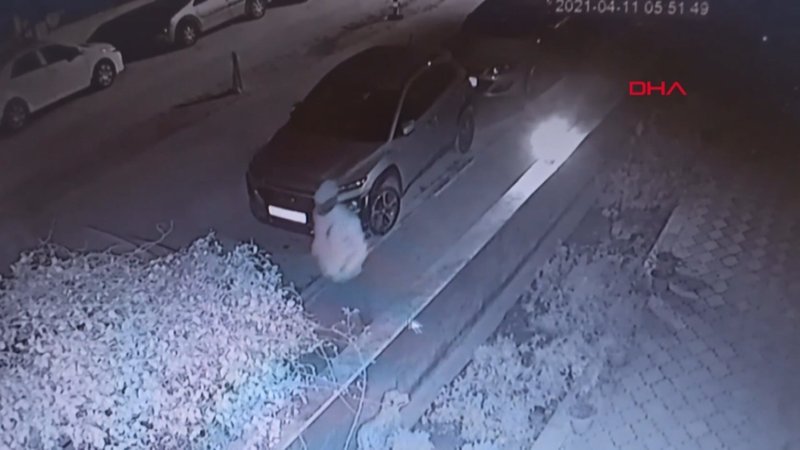 Bursa'da, park halindeki otomobilin çalınma anı güvenlik kamerasınca görüntülendi.