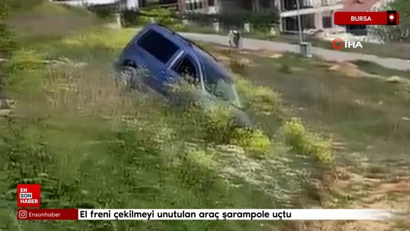 Bursa'da el freni çekilmeyen otomobil, bir süre sonra kendi kendine hareket ederek şarampole uçtu. Yaşanan olayda şans eseri yaralanan olmadı.