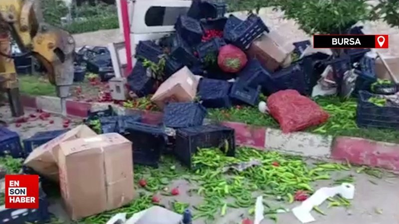 Bursa'da virajı alamayan tır, araçlara çarparak devrildi. Kaza anı güvenlik kamerasınca kaydedildi.