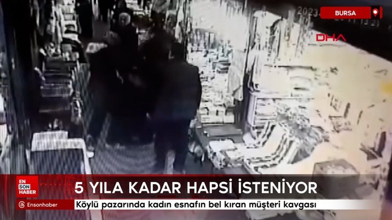 Bursa'da köylü pazarında açtıkları tezgahlarda yaptıkları el işi ürünleri satan esnaf kadınlar G.T. (55) ile H.B. (43) arasında 'müşteri' anlaşmazlığı nedeniyle çıkan tartışma kavgaya dönüştü. Güvenlik kamerasına yansıyan kavga sırasında G.T.'nin beli kırılırken, H.B. hakkında 5 yıla kadar hapis cezası istemiyle dava açıldı.