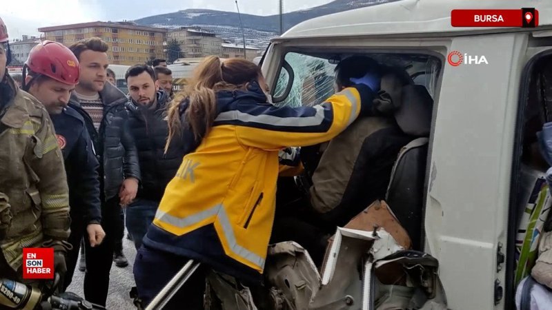 Bursa'da minibüs, ticari araca çarptı: Aracın içinde sıkıştı
