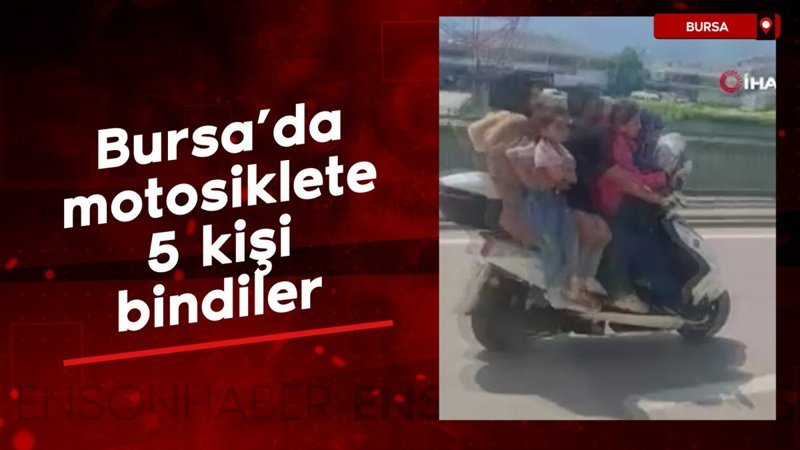 Bursa’da anayol üzerinde motora 5 kişi binen aile, yaptığı tehlikeli seyahatle yürekleri ağza getirdi. Çocuklarında bulunduğu motosikleti görenler şaşkınlıklarını gizleyemedi
