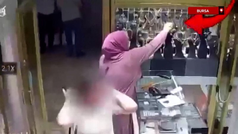 Bursa'da , kuyumcu dükkanına altın alma bahanesiyle gelen şüpheli, vitrinde asılı olan bilekliği elinde saklayıp, çaldı. O anlar, iş yerinin güvenlik kamerasına yansıdı.