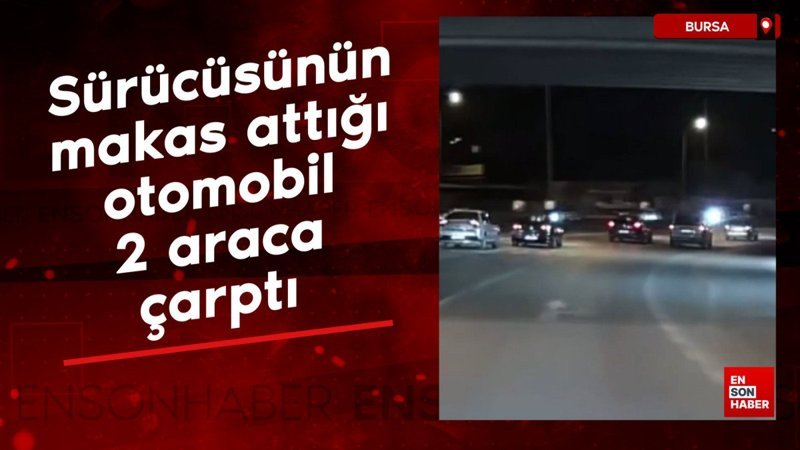 Bursa'da sürücüsünün makas attığı otomobil 2 araca çarptı
