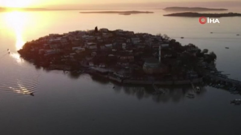 Avrupa'nın en güzel kasabaları arasında gösterilen ve "Küçük Venedik" olarak nitelendirilen Bursa'nın Nilüfer ilçesindeki Gölyazı Mahallesi gün batımında drone ile görüntülendi.