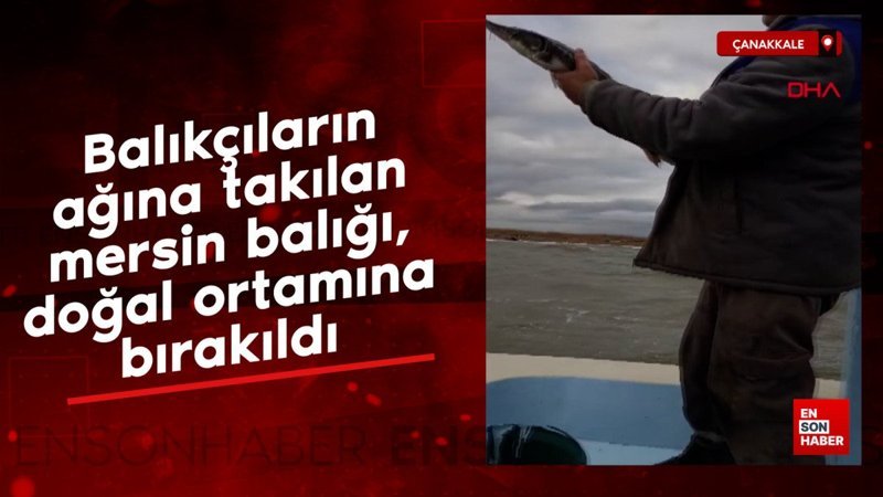 Çanakkale'de balıkçılar ağlarına takılan mersin balığını doğaya geri bıraktı