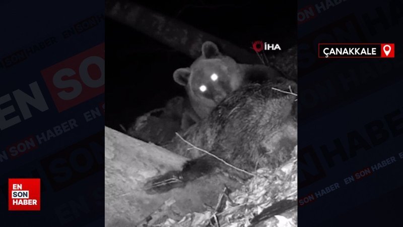 Çanakkale'de domuz yiyen bozayı fotokapana takıldı