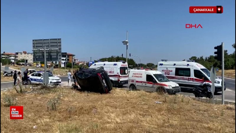 Çanakkale'nin Ayvacık ilçesinde motosikletle çarpışan otomobilin takla attı